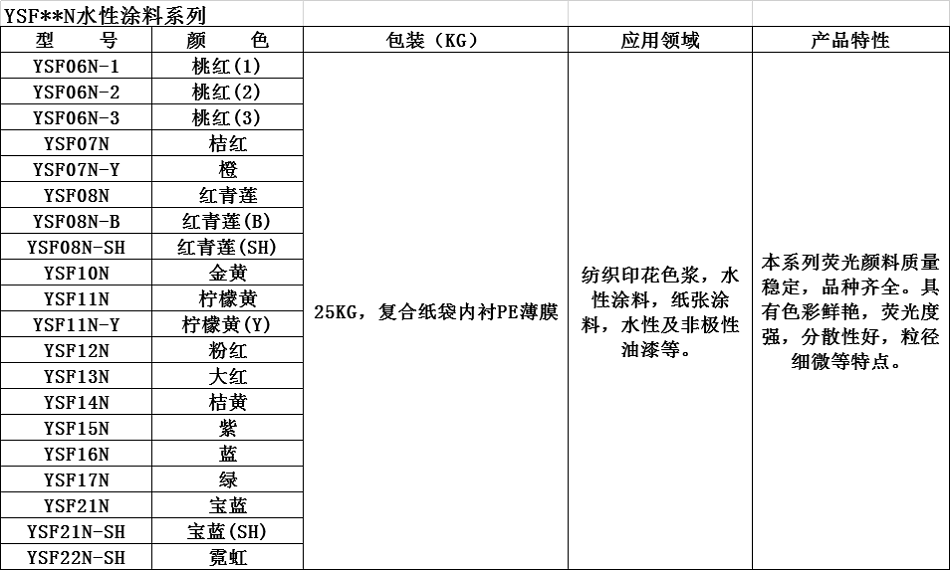 本系列熒光顏料質(zhì)量穩(wěn)定,品種齊全。具有色彩鮮艷,熒光度強(qiáng),分散性好,粒徑細(xì)微等特點(diǎn)。